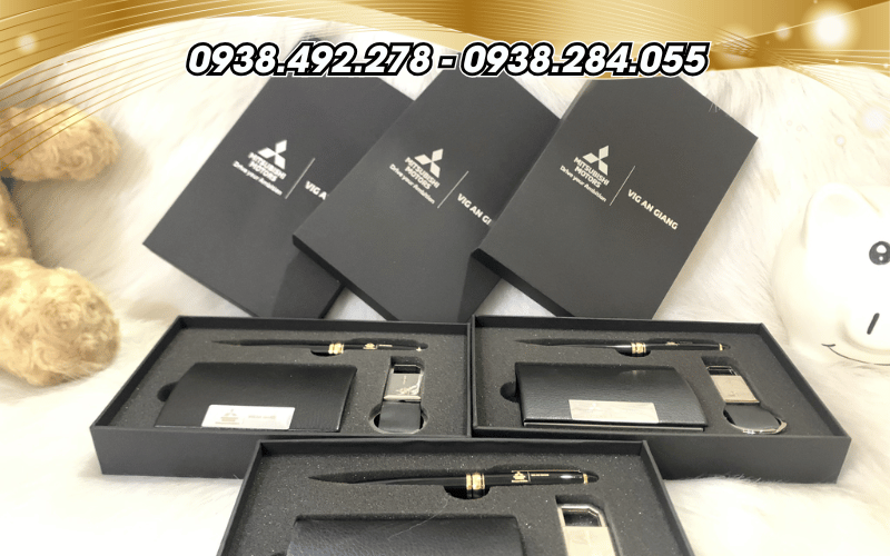 Tăng nhận diện thương hiệu: Việc in logo tinh xảo trên từng sản phẩm trong Giftset (bút, sổ, bình giữ nhiệt...) và bao bì hộp quà giúp đối tác luôn nhớ đến thương hiệu của bạn khi sử dụng.