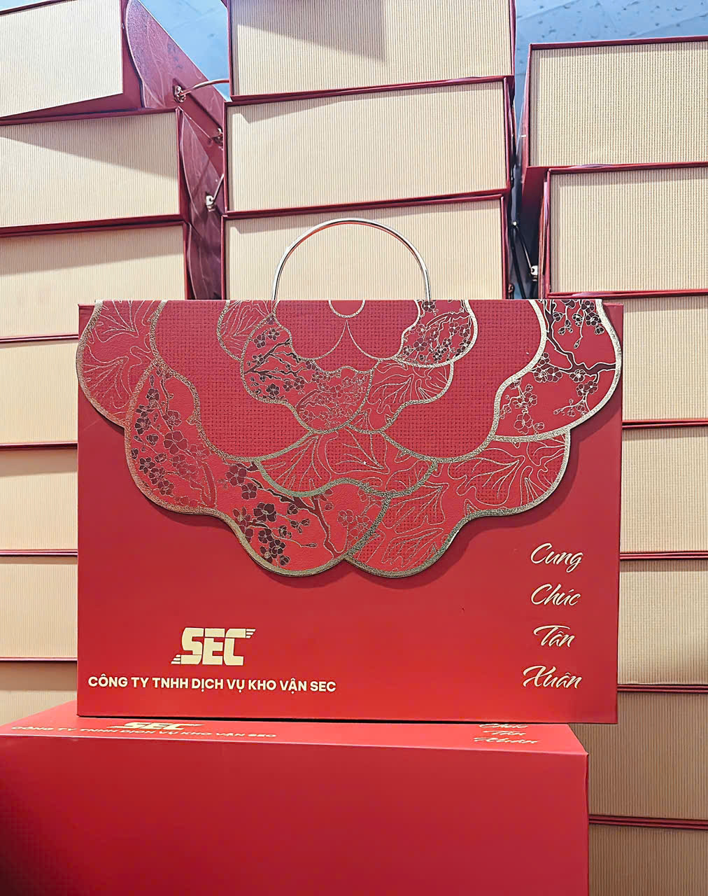 Cá Nhân Hóa Trải Nghiệm: Thiết kế cấu trúc hộp (âm dương, nắp gập nam châm, quai xách tiện lợi) và màu sắc (đỏ-vàng truyền thống, xanh cổ điển kết hợp ánh kim) phù hợp với sản phẩm bên trong và đối tượng nhận quà (đối tác VIP, nhân viên, gia đình).